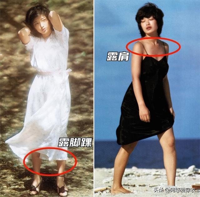 此外,适度地露肤也是十分有必要的,年轻时候的山口百惠在穿搭方面也很大胆,露肩、露腿等搭配都可以释放出女性的魅力,不但没有暴露感,还可以凸显出女人味,比现在好多的年轻女孩还要敢穿。