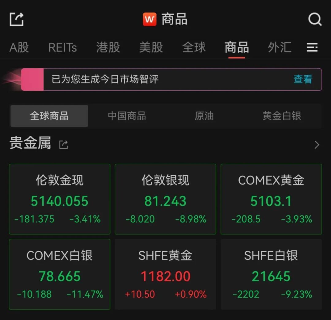 3日晚间,现货黄金失守5200美元大关,截至发稿报5140美元/盎司,跌3.41%;现货白银价格最大跌幅达12.71%,一度跌破80美元/盎司厦门配资平台,截至发稿报81.24美元/盎司,下跌8.98%。
